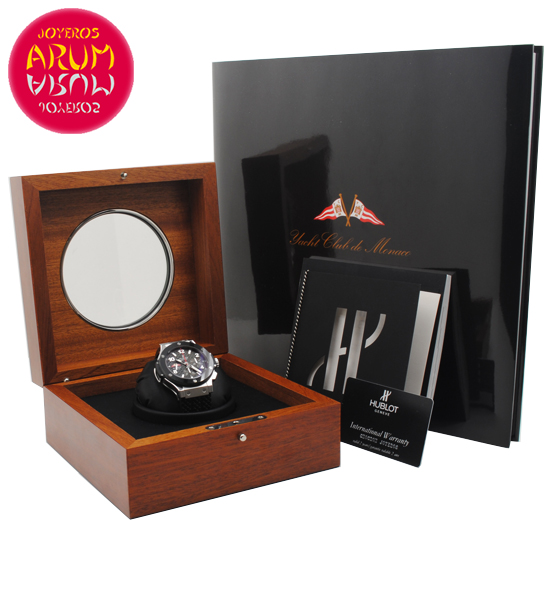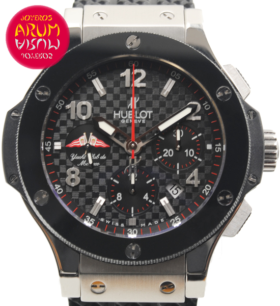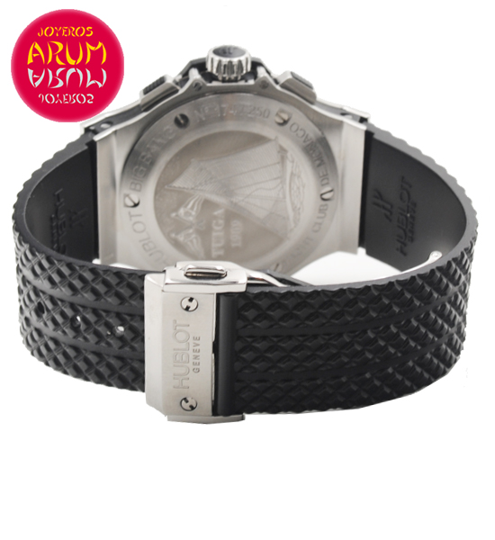 Other specifications :tribute to famous boat Tuiga year 1909, limited edition 250 pieces, calibre HUB44, ceramic bezel, Yacht Club de Monaco logo at nine, chronograph, date between four and five, luminiscence indicators, boat Tuiga engraved in backcase. Year 2006.