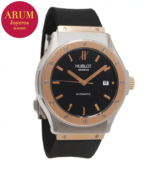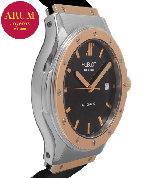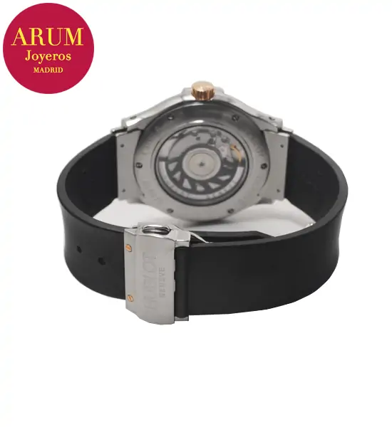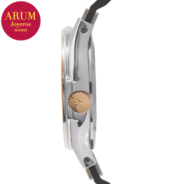 Other specifications :steel and 18K rose gold, date at three, central seconds, screw bezel, transparent caseback.