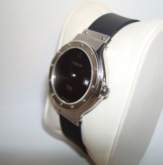 Description :ladies watch, steel, sapphire crystal, quartz movement, center seconds, screwed bezel, date at three, removable screw crown, diameter 28 mm, rubber strap, steel folding clasp.