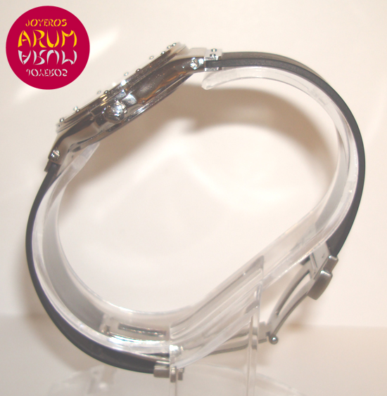 Description :steel, black dial with red tones, screw bezel, sapphire crystal, quartz movement, central second, date at three, screwed crown, diameter 32 mm, waterproof 30 meters, rubber strap, steel folding clasp.