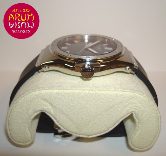 Description :steel, screw bezel, black dial, sapphire crystal, quartz movement, central second, handles and luminescent dial, date at three, screwed crown, diameter 41.3 mm, rubber strap, steel folding clasp.