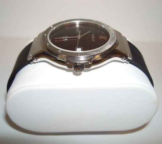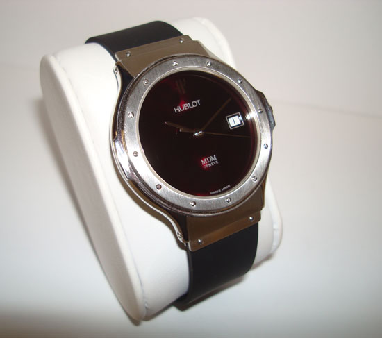 Description :steel, black dial, screw bezel, sapphire crystal, quartz movement, central second, date at three o’clock, screw crown, diameter 36 mm, 50 meters waterproof, rubber strap, steel folding clasp.