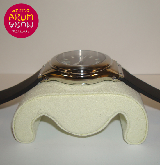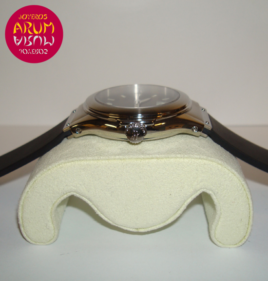 Description :steel, black dial, sapphire crystal, smooth bezel, automatic movement, center seconds, date at three, diameter 41 mm, screw crown, 50 meters underwater, strap rubber, steel folding clasp.