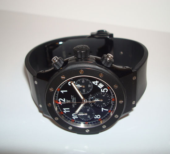Description :black steel, limited to 500 pieces (No. 382/500), sapphire crystal, automatic movement, chronograph, indicators hours, minutes and seconds, date, handcuffs and luminescent numbers, bezel screw rubber, transparent back cap, crown and push buttons with protective rubber, rubber strap, black steel folding clasp.