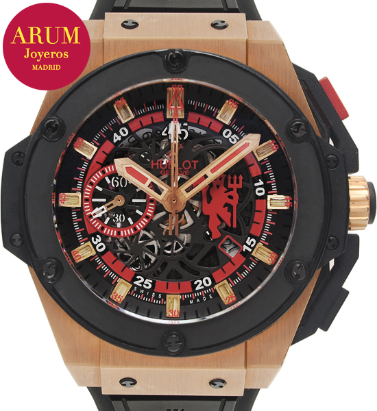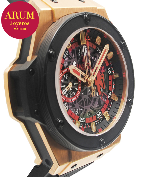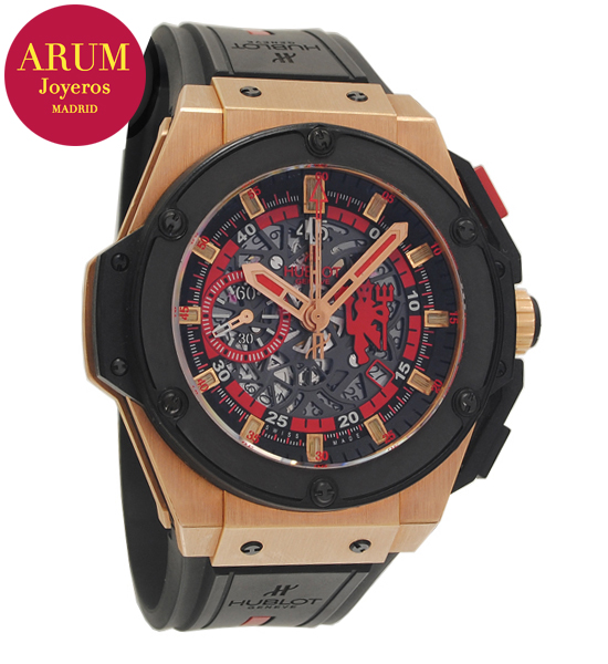 Other specifications :Manchester United edition by Hublot, limited edition 250 pieces (079/250), calibre HUB4245, power reserve 42 hours, indexes made of the famous grass from the stadium Old Trafford, “Red Evil” in the dial, chronograph, date, small seconds.