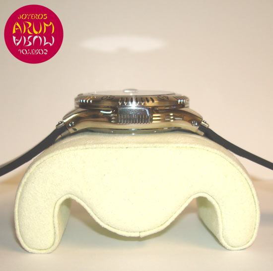 Description :steel, black dial, rotating bezel, sapphire crystal, automatic movement, date at three, magnifying glass on date, handles and dial with luminescent indicators, security system warranty waterproof, water resistant 2000 meters, 45 mm diameter, rubber strap, folding clasp, year 2011.