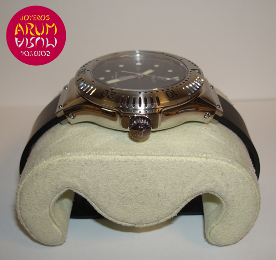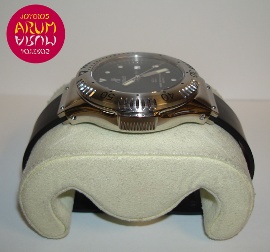 Description :steel, black dial, rotating bezel, sapphire crystal, automatic movement, center seconds, handles and luminescent dial, date at three, diameter 35 mm, screw crown, diameter 42 mm, waterproof 400 meters, rubber strap, folding clasp steel.