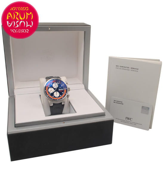 Other specifications :special edition Jacques Cousteau, limited edition 2500 pieces (0736/2500), calibre IWC79320, power reserve 44 hours, chronograph, day and date at three, small seconds at nine, luminous marks. Year 2007.