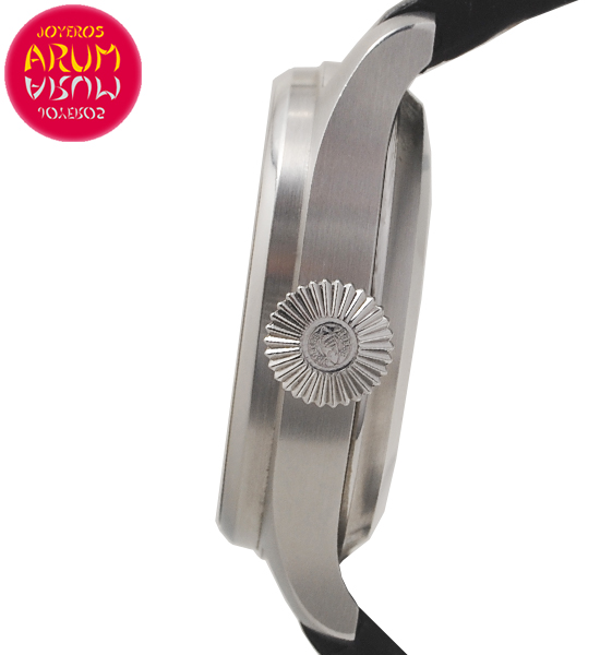 Other specifications :power reserve 7 days, power reserve indicator at three, date at six, central seconds, luminous marks. Year 2005.
