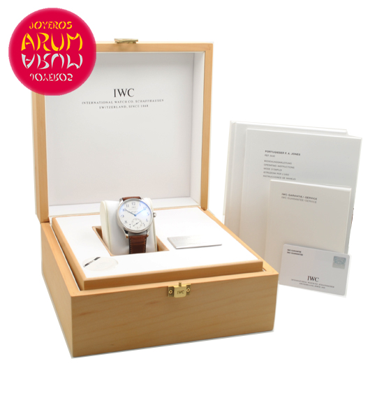Other specifications :special edition tribute to IWC founder F.A. Jones, limited edition to 3000 pieces (1277/3000), small seconds at six, blue steel hands and numbers, transparent caseback. Year of production 2006, warranty in white.