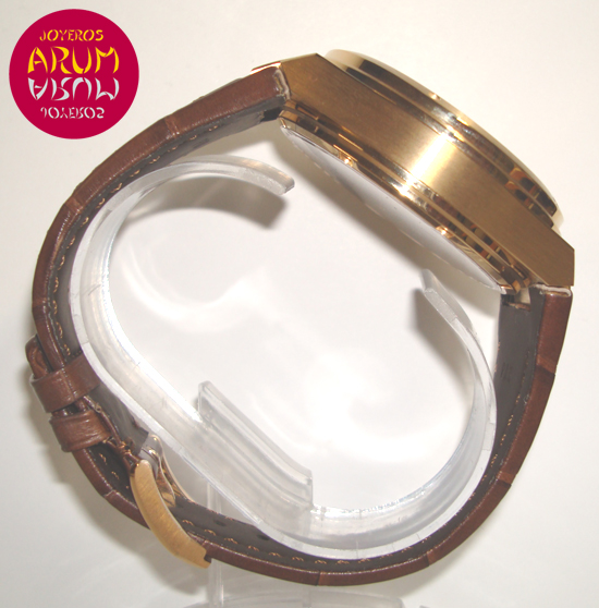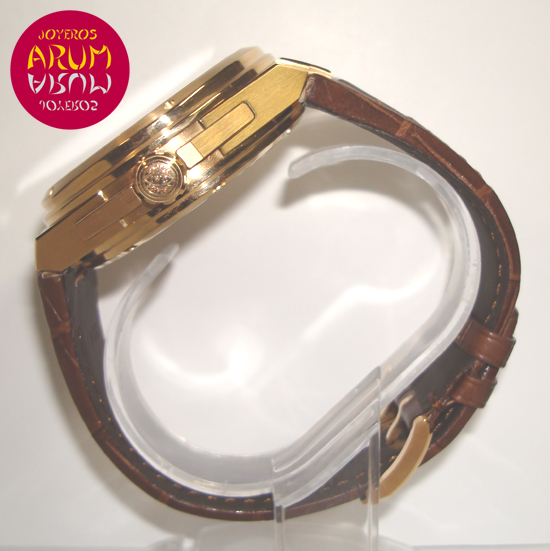 Description :rose gold, white dial, sapphire crystal, automatic movement, power reserve of 168 hours (7 days), central seconds, power reserve indicator at three, date at six, handles and indexes luminescence, screw crown, transparent backcase, diameter 45 mm, waterproof 120 meters, brown leather strap, rose gold buckle closure.