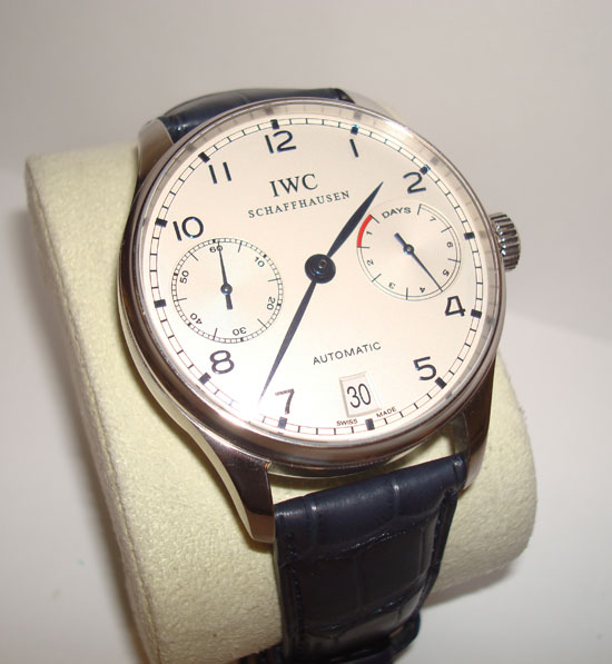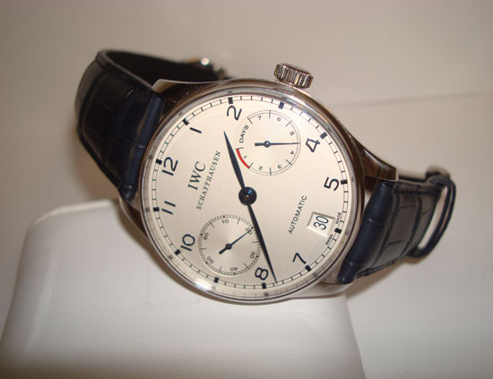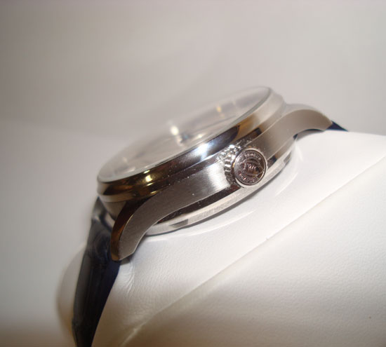 Description :steel case, sapphire crystal on both sides, blue steel hands, automatic movement, small seconds and power reserve indicator, date at six, 42 mm diameter, transparent rear cover, removable screw-down crown, 30 meters underwater, strap blue leather, steel folding clasp.