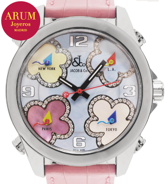 Other specifications :five time zones, central seconds, diamonds, luminous marks.