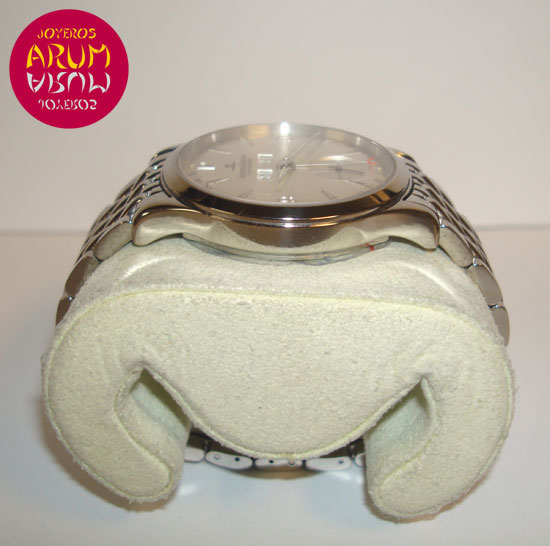 Description :steel, gray dial, sapphire crystal, automatic movement, indicator day of week and month with letters, date indicator with auxiliary handle, small seconds at six, handles with luminescent indicators, screw crown, diameter 37 mm, steel hidden clasp, includes a second strap brown leather.