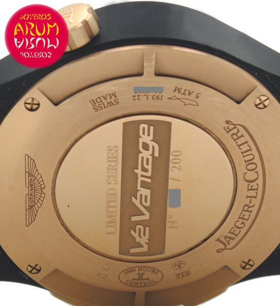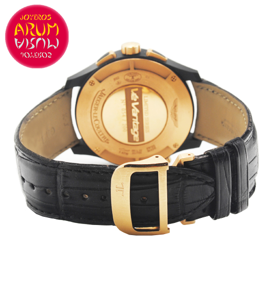 Other specifications :limited edition 200 pieces, collaboration between Jaeger LeCoultre and Aston Martin, chronograph, world time, date at five, small seconds at six, minute counter at three, hour counter at nine, luminiscence marks, auxiliary crown at ten, 18K folding clasp. Year 2010.