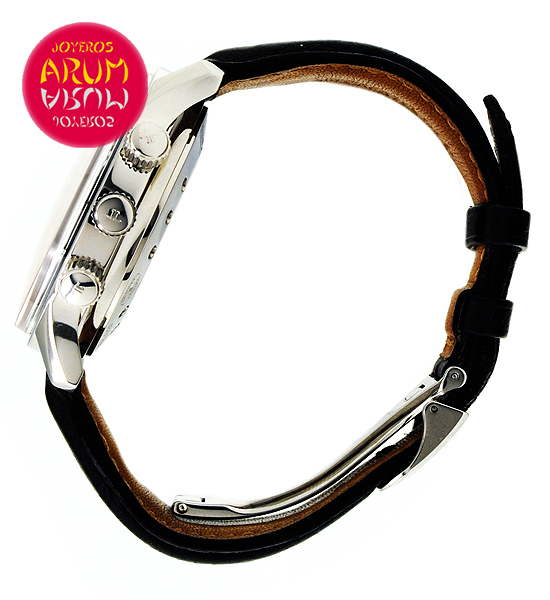 Other specifications :special edition Aston Martin, rotating inner bezel with crown at three, date at three, alarm with central handle, calibre 918, luminiscence numbers and handles, Aston Martin logo transparent caseback, additional strap, year 2005.