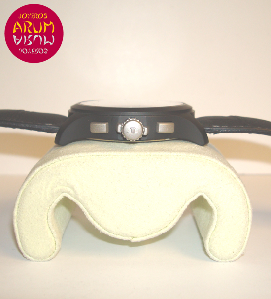 Description :limited to 500 pieces, ceramic, black dial, smooth bezel, sapphire crystal, automatic movement, caliber JLC 751 F, power reserve 65 hours, chronograph, indicator of seconds, minutes, hours, date between four and five, handles and dial with luminescent indicators, lock crown guarantees waterproof, diameter 44 mm, water resistant 100 meters, black leather strap, buckle closure.