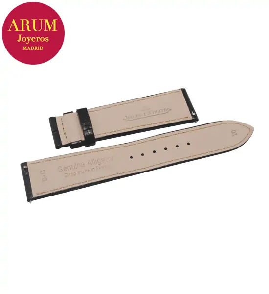 Brand :Jaeger-LeCoultreARUM Reference: RAC2273Material :Crocodile LeatherColor :blackLenght (mms) :120 – 75Width (mm) :20Deployant/buckle measure: (mm) :18