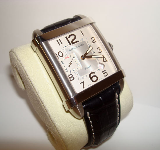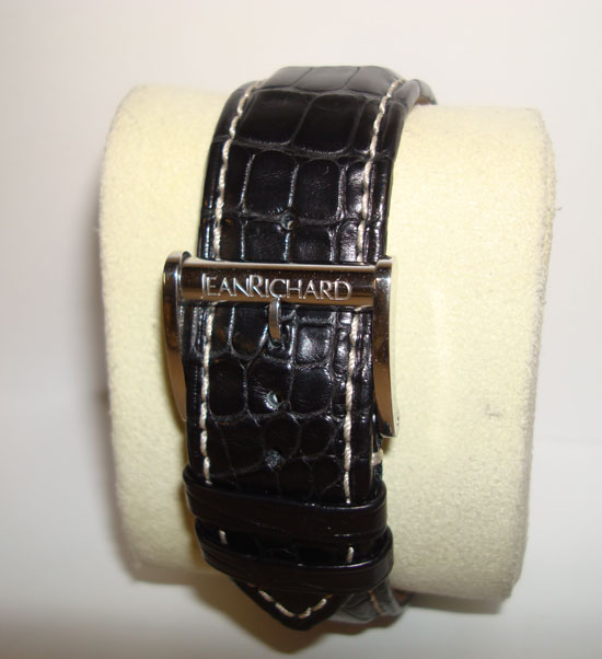 Description :Limited edition 1000 pieces (no. 0744/1000), steel, sapphire crystal, automatic movement, small seconds, date, luminescent handles, screwed crown, diameter 34 mm by 36 mm, transparent back cover, black leather strap, buckle closure steel.