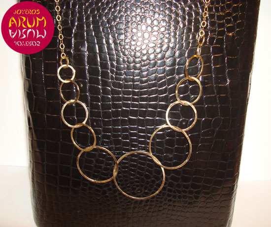 Product: Tous necklace in yellow gold with rings in different sizes. Measures approx, 92 cm. Weight 21.7 grs.