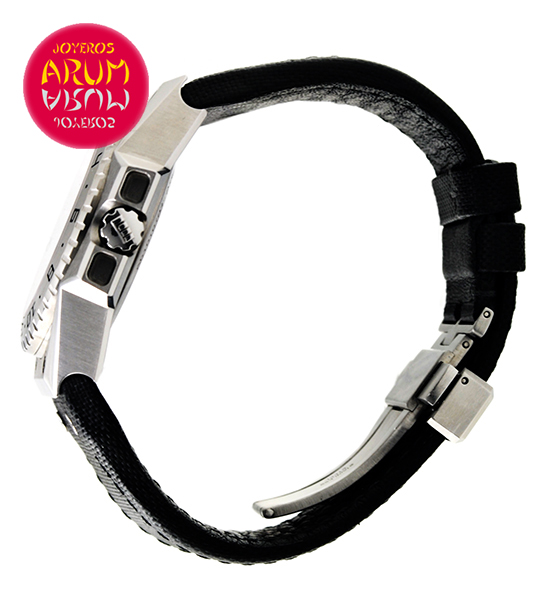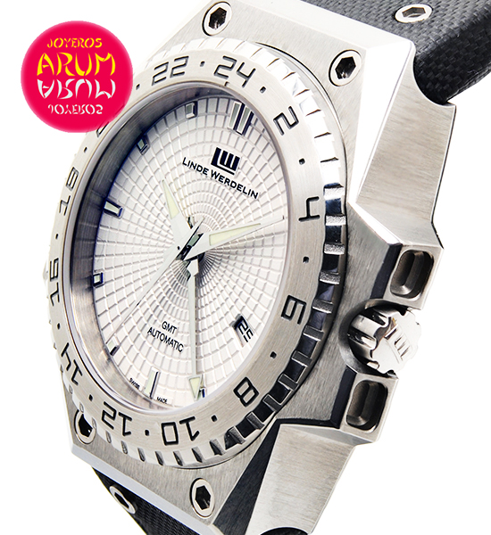 Other specifications :limited edition 222 pieces, rotating bezel with 24 hour scale, GMT (second time zone), central seconds, date at four, luminiscence marks, screw crown, original Linde Werdelin buckle and strap. Year 2013.