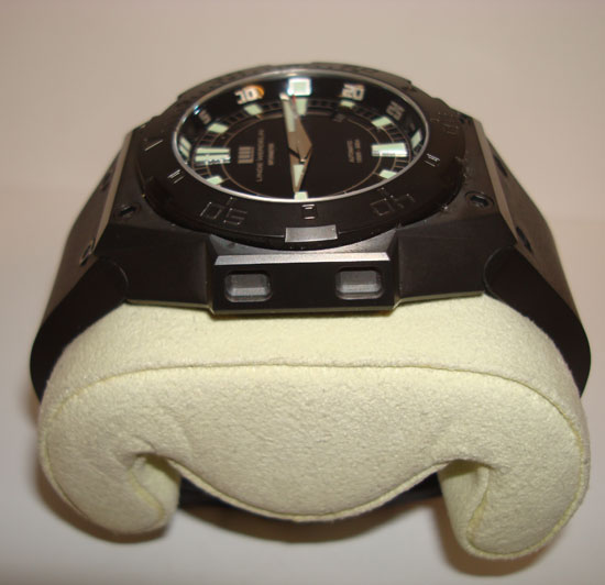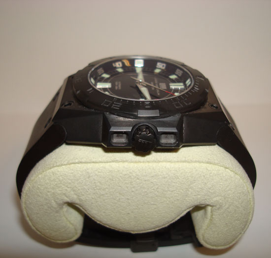 Description :Elemental Biformeter limited edition to 22 pieces, coating DLC (Diamond Like Carbon), sapphire crystal, automatic movement, center seconds, luminescent handles and dial, date at four o’clock, screw crown, water-resistant 300 meters, diameter 47 mm (all inclusive ), rubber strap, folding clasp. Luxury sports watch, prepared for extreme conditions in the mountains or under water, and to carry always, innovative design and impeccable clarity and concern for the perfect little details including the manufacture of the belt.