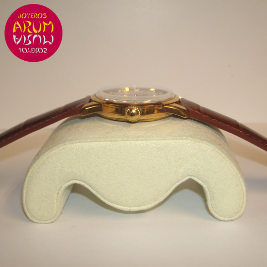 Description :pink gold, gray dial, sapphire crystal, automatic movement, center seconds, dial and handles with luminescent indicators, date at twelve, diameter 35 mm, waterproof 30 meters, brown leather strap, buckle closure.