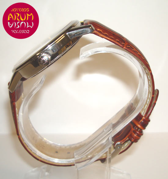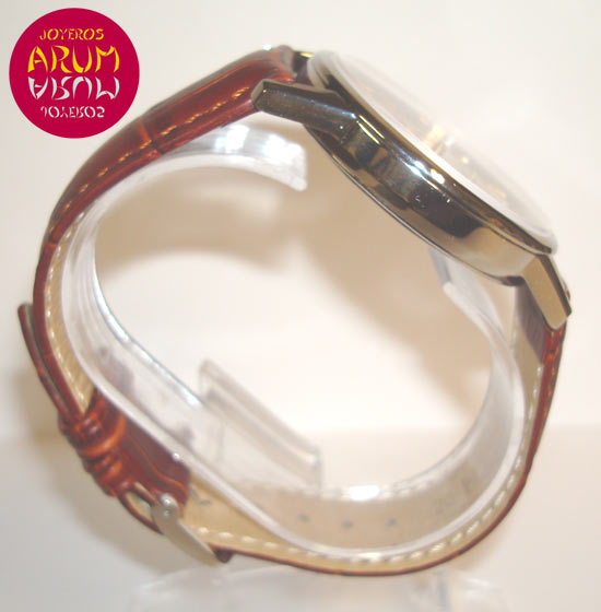 Description :steel, white dial, sapphire crystal, automatic movement, caliber L615, small seconds and date at six, handles with luminescent indicators, crown at right, diameter 38.5 mm, waterproof 30 meters, brown leather strap, buckle closure .