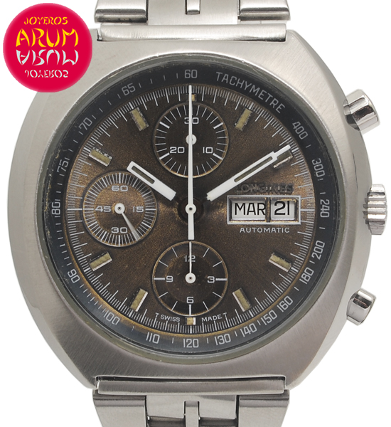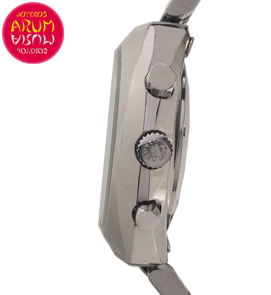 Other specifications :chronograph, tachymetre, day and date at three, small seconds at nine.