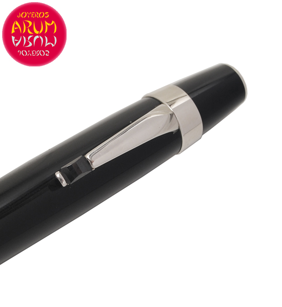 Description: Prestigious Montblanc ballpoint made in black precious resin, plaque platinum details and clip decorated with black onyx. The measure are 11 cm.