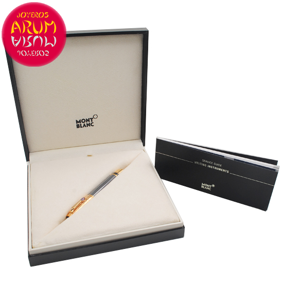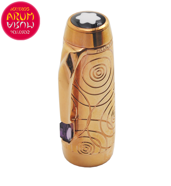 Description: Retractable fountain pen Montblanc Boheme, made of gold plated metal and gray resin. The clip is decorated with an amethyst and cap crowns Montblanc star.. The nib is made of 18K gold and is removed by turning system. Measure is 11 cm.