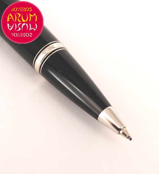 Description: Pencil made of black precious resin, rings and platinum plated details, Montblanc logo, platinum plated clip. Rotation system. Eraser inside the cap. Size 115 mm.