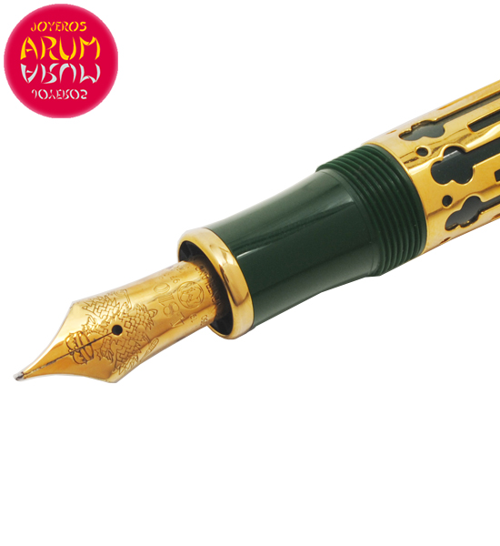 Description: Montblanc fountain pen tribute to the Tsar that led the Russian Empire to culture, Peter I The Great. Limited edition of 4810 pieces and produced only in 1997. The fountain pen is made of english green resin and gold metal ornamentation. The nib is made of 18K gold with the engraved tzar shield. The cap is crowned by the iconic Montblanc star. The size of the pen is 14 cm. King Juan Carlos I of Spain signed his abdication with this fountain pen.