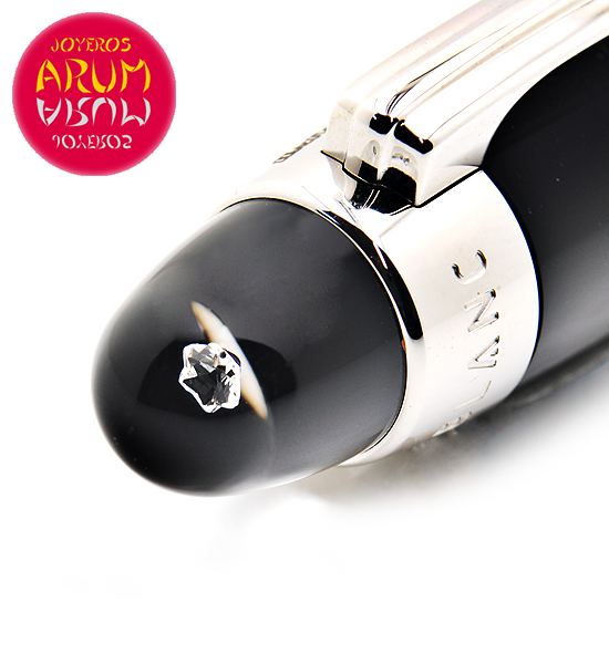 Description: Montblanc Fountain Pen made in black resin and plaque platinum details, with floated diamond. Nib in 14K gold.