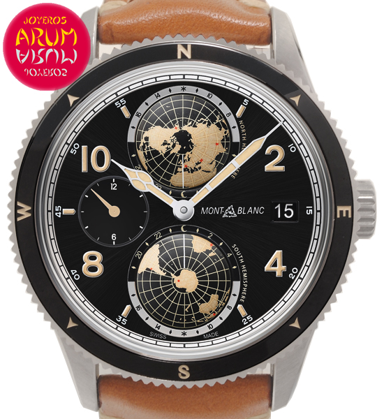 Other specifications :calibre MB29.25, power reserve 42 hours, second time zone, worl time with two hemisphere discs, day/night function, ceramic bezel, luminous marks. Year 2018.