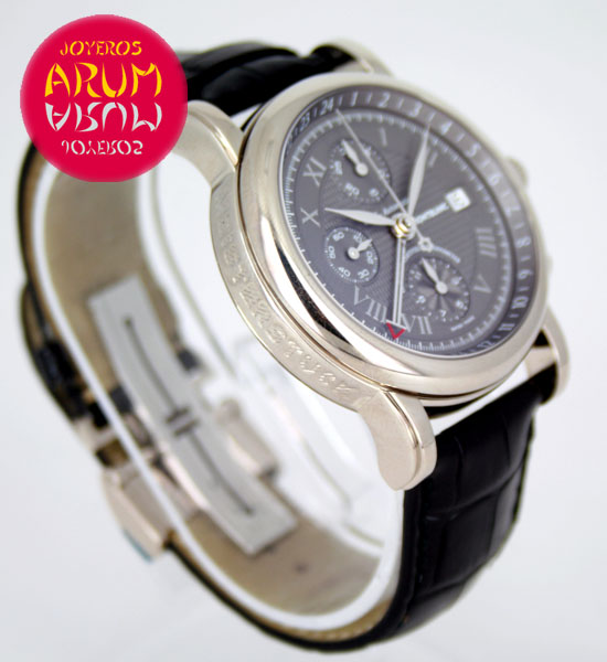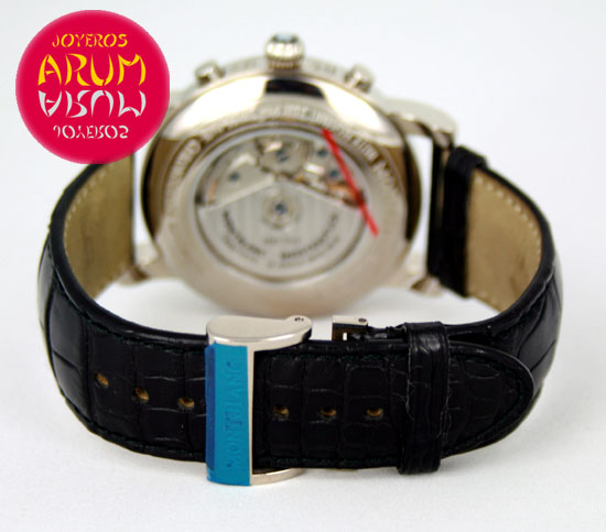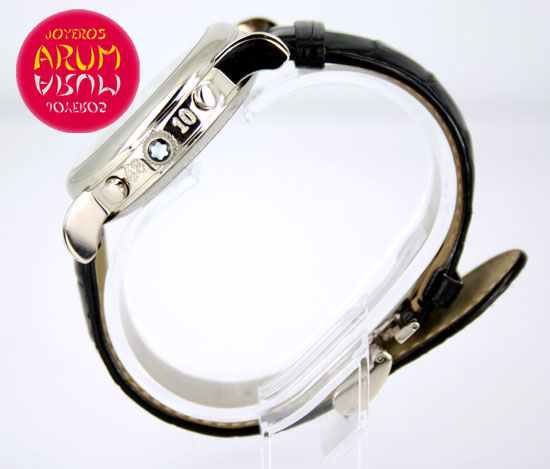 Description :Mont Blanc Star cronógrafo GMT automatic clocks. 42Mm 18K white gold box reverse, Crystal of sapphire, wreath without coil with 1 meeting tórica y18K white gold with mother-of-pearl emblem Mont Blanc, Crystal of sapphire arched with double recubrimiento antirreflejante, Gray anthracite sphere guilloché, cronógrafo automatic (COSC) Mont Blanc 4810/503 with movement 12 hours Minimum and 30 book-keepers, needle of the central cronógrafo, 24 hours with the second indicator hourly zone, approximately 48 hours of reservation of march, strap of black cayman with triple of folding steel and 18K white gold clasp. Resistant to the water up to 3 bar (30 m).