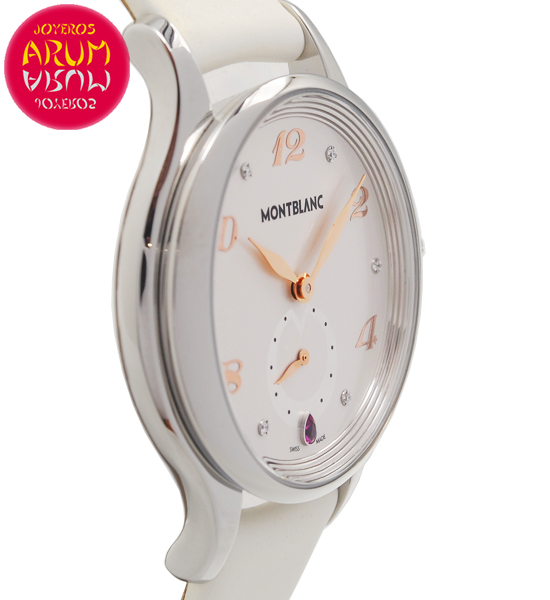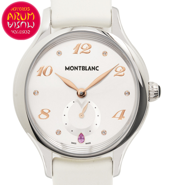 Other specifications :tribute to Grace Kelly, dial with six diamonds and one ruby, small seconds at six, crown with Montblanc star.