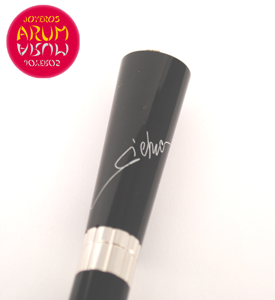 Description:Montblanc fountain pen tribute to Marlene Dietrich, limited edition of 1901 pieces. Cap and barrel made of black precious resin deep. Platinum finishes. The clip, tie shaped, very characteristic of the actress, wearing a dark blue sapphire. Gold nib rhodium plated 18K. Size 140 cm.