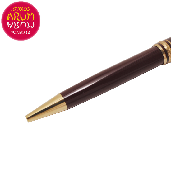 Description: Montblanc Meisterstuck ballpoint made in bordeaux resin and plaque gold, Montblanc star in the top. Measure is 13,7 cm.