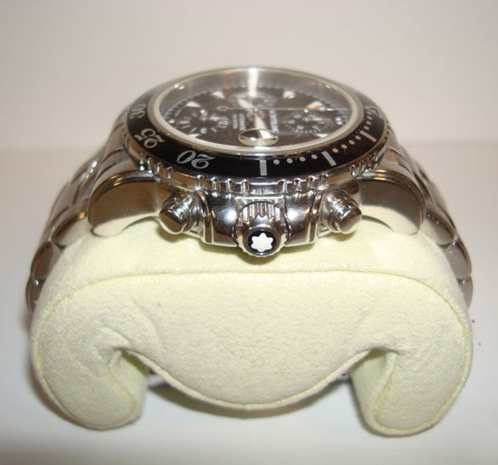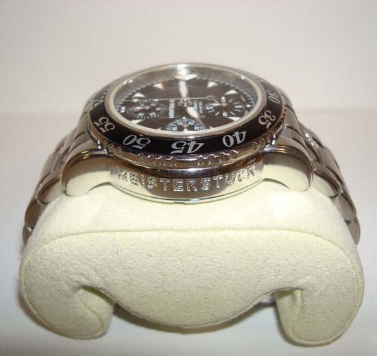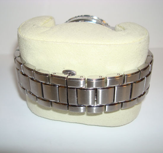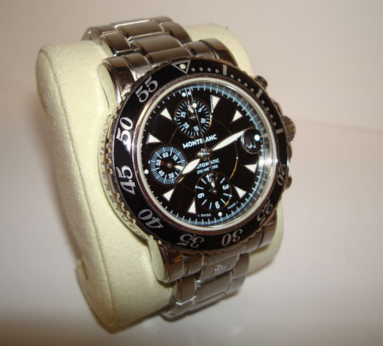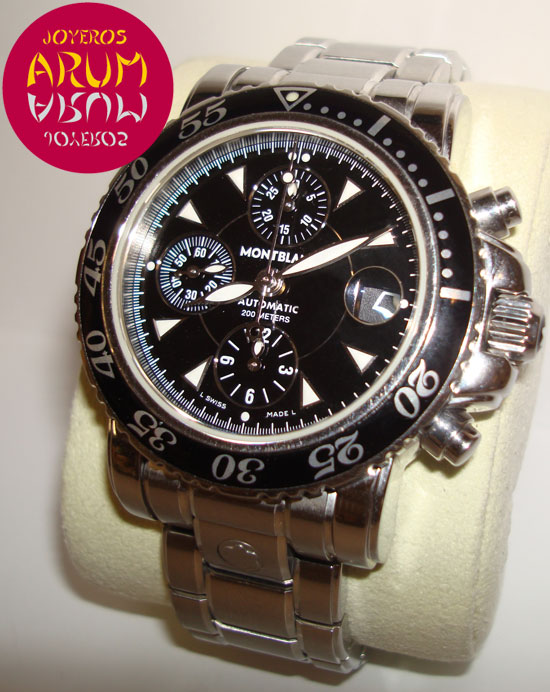 Description :steel, black dial, sapphire crystal, automatic movement, unidirectional rotating bezel, chronograph, three indicators on the dial, seconds, minutes, hours, date at three o’clock, date magnifier, handles and luminescent dial, water resistant 200 mts, screw crown and two buttons, diameter 41 mm, steel strap, steel folding clasp.