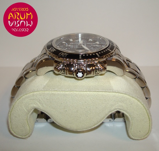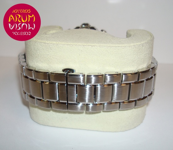 Description :steel, black dial, unidirectional rotating bezel, sapphire crystal, automatic movement, handles and luminescent dial, chronograph, three indicators on the dial, seconds, minutes, hours, date with magnifier at three, waterproof 200 meters, diameter 41 mm, steel strap, hidden folding clasp, year 2009.