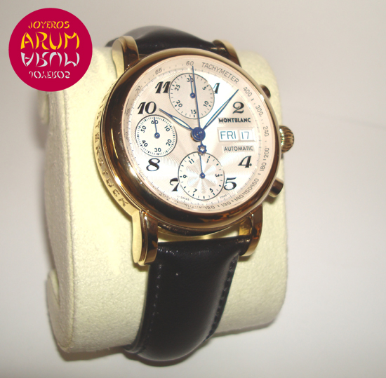Description :steel gilt, white guilloche dial, smooth bezel, sapphire crystal, automatic movement, blued steel hands, handles with luminescent indicators, chronograph, three indicators on the dial, seconds, minutes, hours, date and day of the week at three, screw crown and two buttons, diameter 38 mm, transparent back, black leather strap, buckle closure.