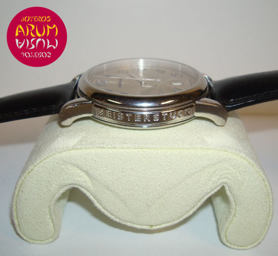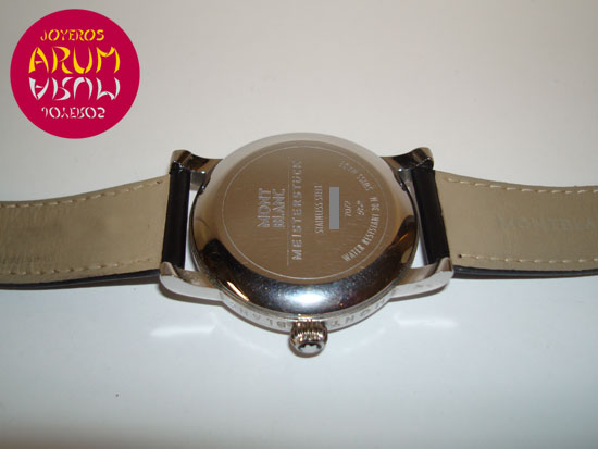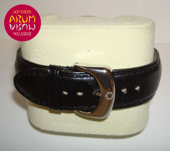Description :steel, silver dial with arabic numerals, sapphire crystal, quartz movement, central seconds, date at six o’clock, crown decorated with the logo of Montblanc, diameter 40 mm, waterproof 30 meters, black leather strap, steel buckle closure, year 2010.