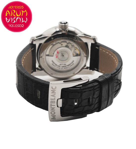 Other specifications :date at six, central seconds, luminous marks, smooth bezel, crown with Montblanc logo, transparent caseback.