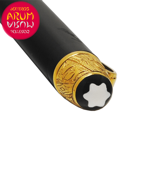 Description: Montblanc ballpoint tribute to Voltaire, limited edition 13000 pieces. Made in black resin, sterling silver and gold plated details. Montblanc star in the cap. The measure is 14 cm.