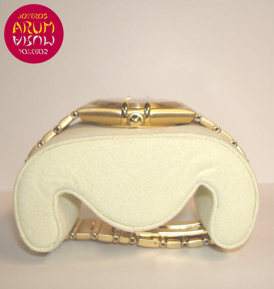 Description :yellow gold, white dial, bezel with roman numbers, sapphire crystal, automatic movement, center seconds, luminescent handles with indicators, date at three, screw crown, diameter 35 mm, yellow gold strap, hidden folding clasp.
