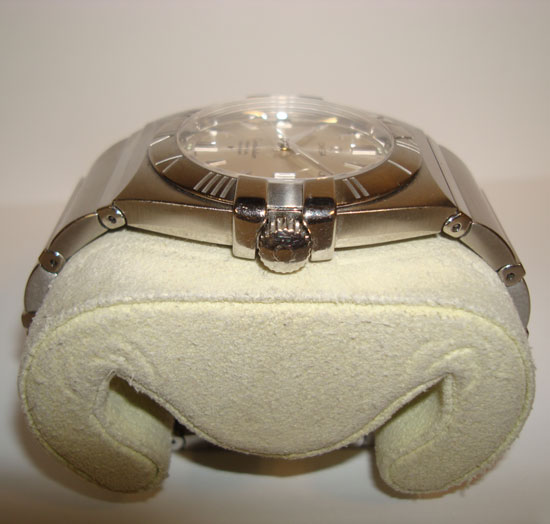 Description :steel, grey dial, bezel with roman numerals, sapphire crystal, quartz movement, central second, date at three, perpetual calendar, caliber 1680, diameter 38 mm, screw crown, strap steel, folding clasp.