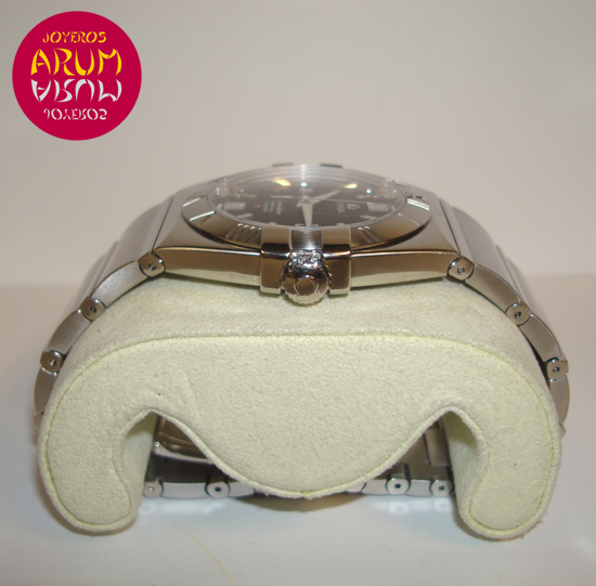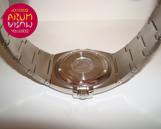 Description :steel, black dial, sapphire crystal, quartz movement, central second, handles with luminescent indicators, date at three, screwed crown, diameter 38 mm, waterproof 30 meters, steel strap, hidden folding clasp.