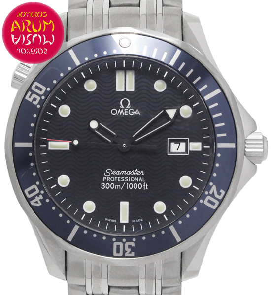 Other specifications :date at three, central seconds, luminiscence marks, auxiliary crown at ten, helium valve, rotating bezel, Omega seahorse in backcase.