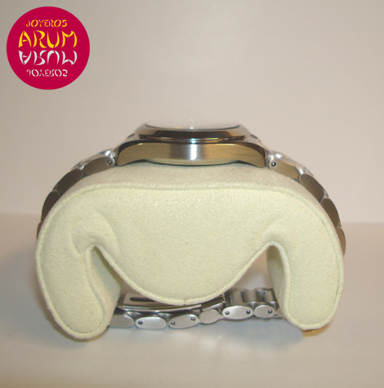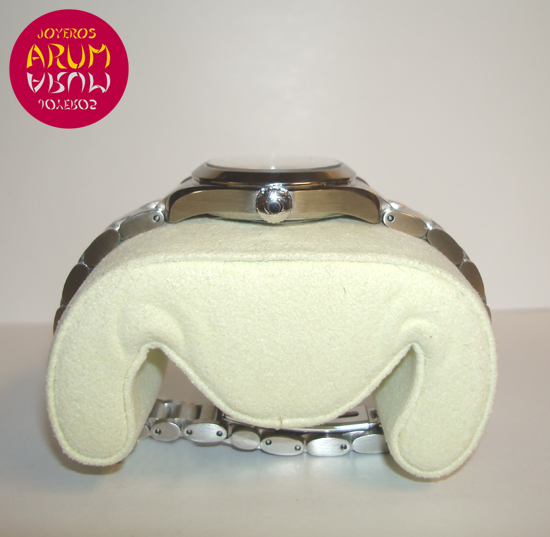 Description :lady watch, steel, black dial, smooth bezel, sapphire crystal, quartz movement, center seconds, luminescent handles with indicators, date at three, screwed crown, diameter 29 mm, waterproof 150 meters, steel strap, hidden folding clasp.